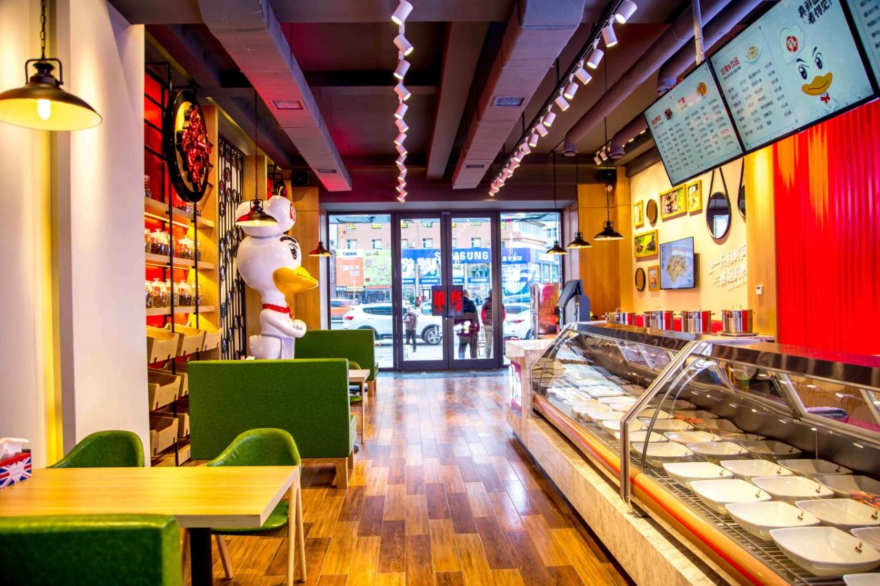 2、絕味、周黑鴨建立了上萬家成熟終端,都是10平米左右的小店,如果我們想在終端上與它們不同,就不能復(fù)制它們的選址和運(yùn)營。再者,熟食鹵制品的天花板早已到來,難以實現(xiàn)盈利的增長。于是我們謀劃出了一個200平米的大店,把除了鹵味之外的衍生品:鴨腸炒飯,酸辣粉,米線,啤酒飲品與之組合,讓零食正餐化,尋找行業(yè)新的增量,也與競爭對手產(chǎn)生區(qū)別。(也得力于我們在東北的調(diào)研結(jié)果,消費(fèi)者購買了鹵制食品后的食用場地是家里,當(dāng)作一道菜,而不是休閑零食)